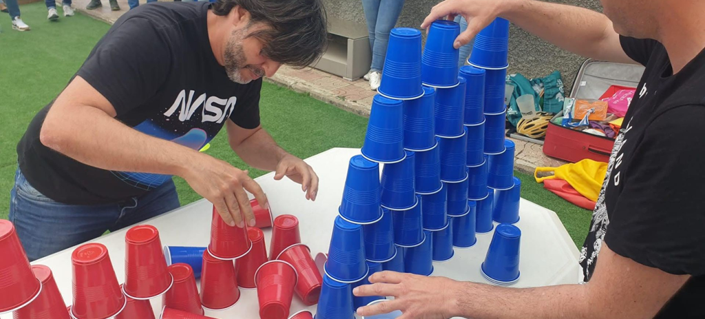 Juegos tipo gincana (Juegos cooperativos, de gran recorrido, de pistas y pruebas por equipos) además de 30 minutos de Show que puede ser de magia cómica, de experimentos científicos o de pompas de jabón gigantes. Ideal para comuniones. Recomendado a partir de 7 años.